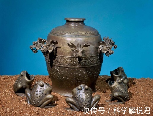 张衡的乐器,似一个大酒坛,由青铜制成,直径约六尺。? 器外有八个龙头,正对着罗盘的八个主要方向。? 在龙头下方,在器皿的底部,有八只青蛙,嘴巴张开,头向上倾斜。? 罐子的内容未知,但怀疑其中装有某种钟摆装置。